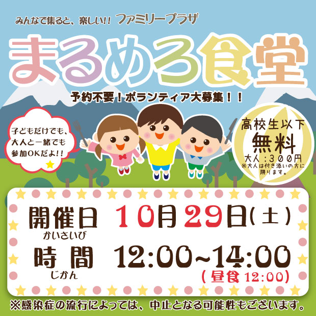 地域の皆さまが集まって、楽しく遊べる「まるめろ食堂」を、10月29日(土)に開催する予定です!