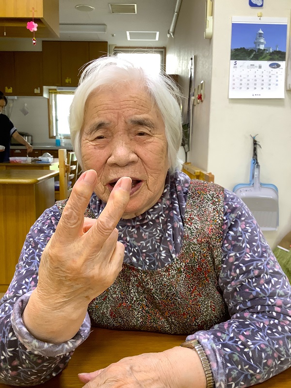 午後の体操終わりに「いえ~い!」