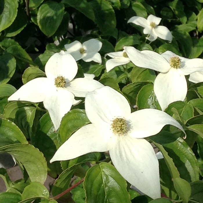 ケアハウスの中庭に咲くヤマボウシ。花の色の移り変わりを、どうしても見ていただきたいと思いホームページにアップしてみました。