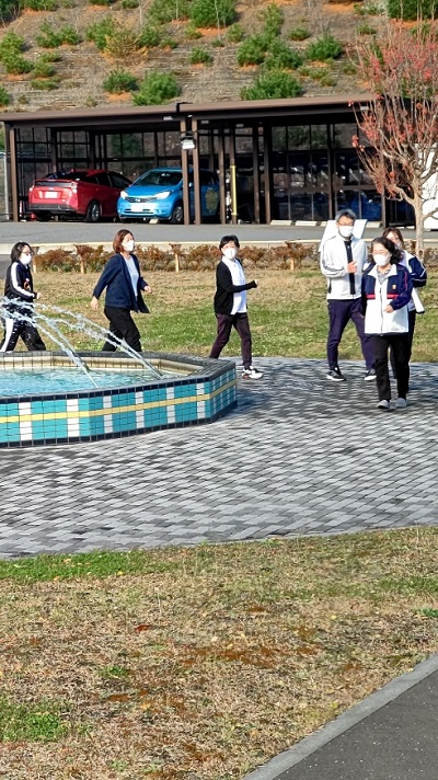 お昼休み、隊長を先頭に皆で、「いち、に、いち、に」元気に歩きます。
