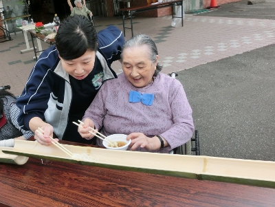 施設の玄関前でしたが、ワイワイ賑やかに楽しんでいただきました!