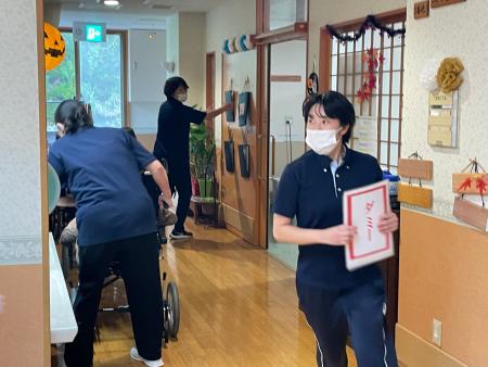 2024年10月29日 避難訓練 いざという時のために コロナ禍より机上で避難訓練について講習をしていましたが、利用者と共に避難訓練を行いました。 当日は生憎の雨となり、外への誘導はできませんでしたが緊張感のある訓練となりました。 火災警報からの火元の確認、管内アナウンス。 そして、職員同士、声を掛け合いながら大きな声で安全に誘導していきます。 全員の避難を確認します。 消火器や放水の仕方を教えてもらい練習です。 訓練が終わったら、職員はぐったり。
