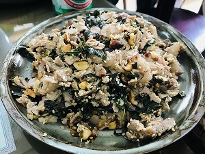 行者ニンニクのサラダ カレー風味の鶏肉スープ バインミー(具無し)