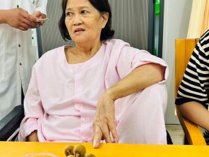 一緒に体操を行います、ベトナムの若い男性職員が来ると2名とも笑顔がこぼれます。