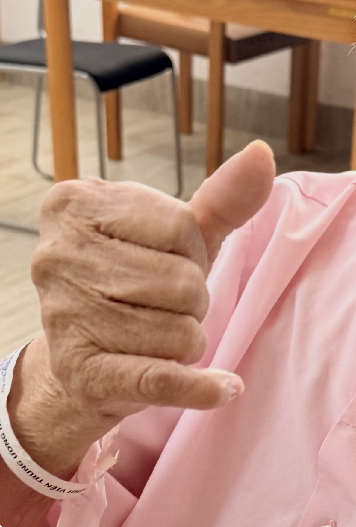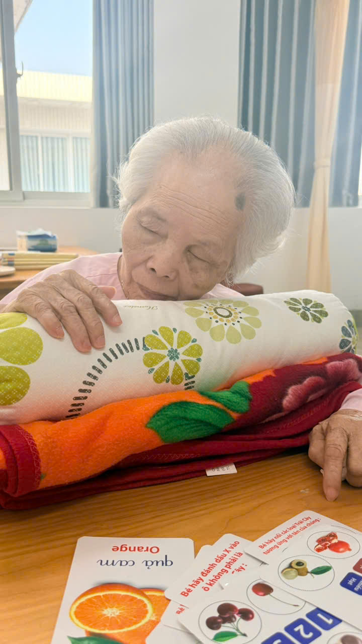 「ベッドから落ちそうになるから体に触ると私を叩くんだよ。こわいわ〜」